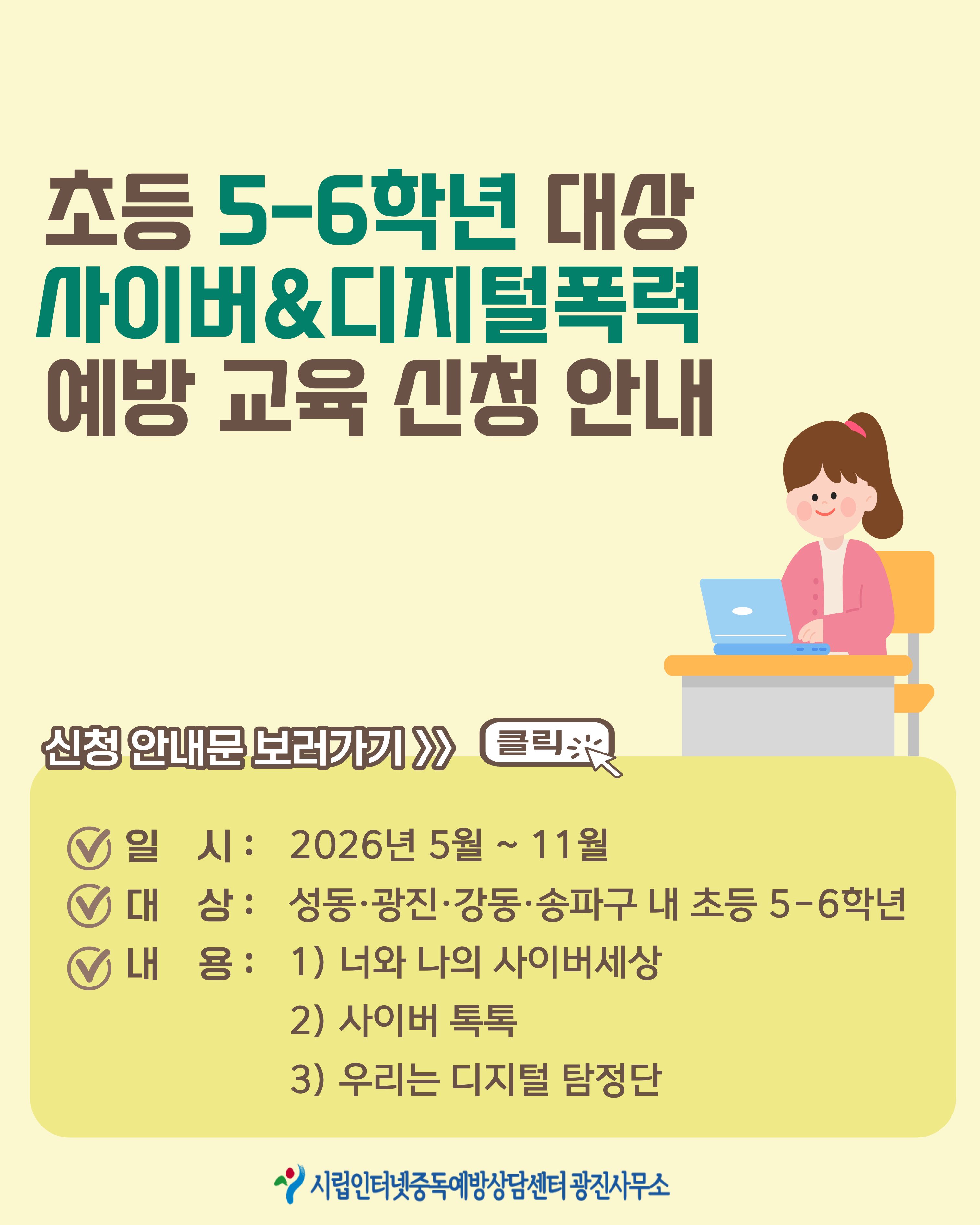 [04970] 서울특별시 광진구 구천면로2(광장동, 광진청소년센터 1층) 시립인터넷중독예방상담센터 광진사무소
